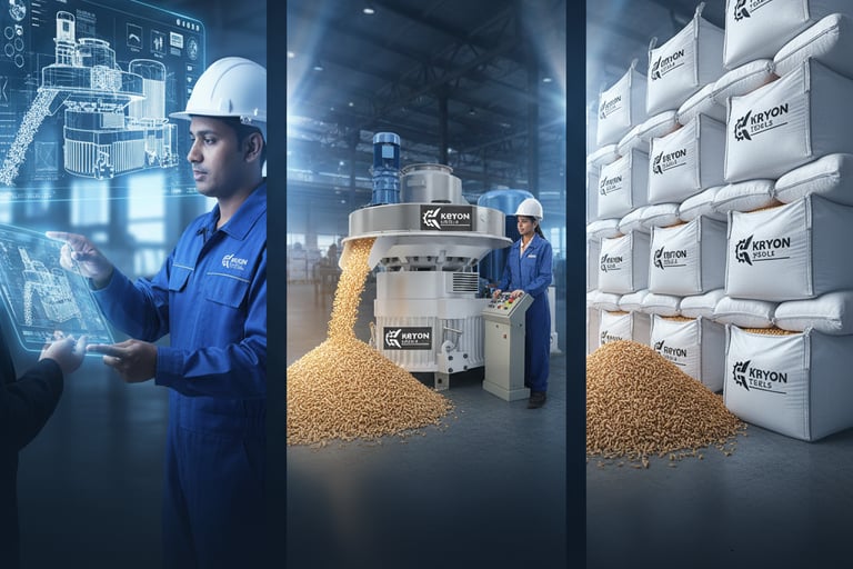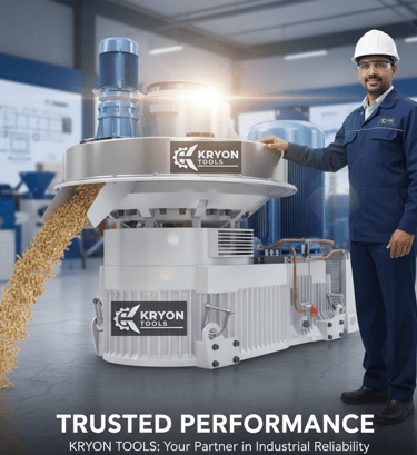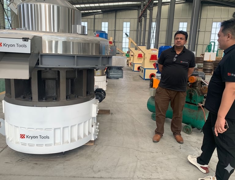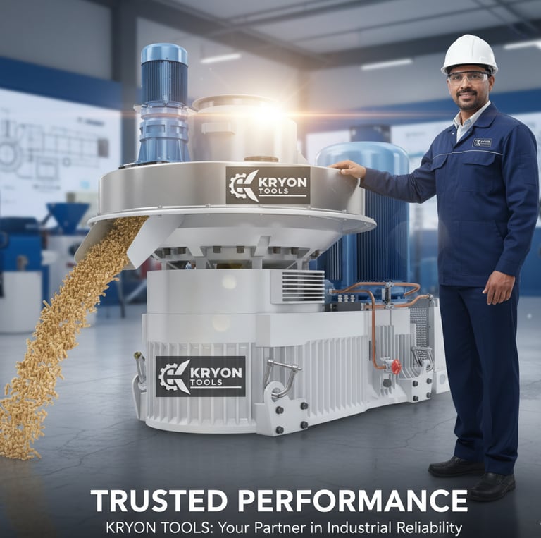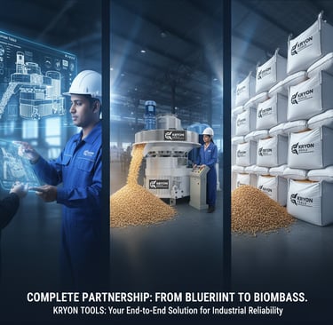 Kryon Tools specializes in rice husk pallet machines, offering comprehensive services and high-quality parts sourced from China and Germany, ensuring reliability and efficiency.